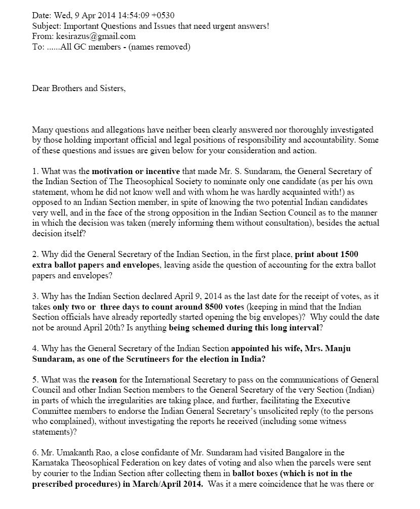 Kesiraju’s email to all General Council members